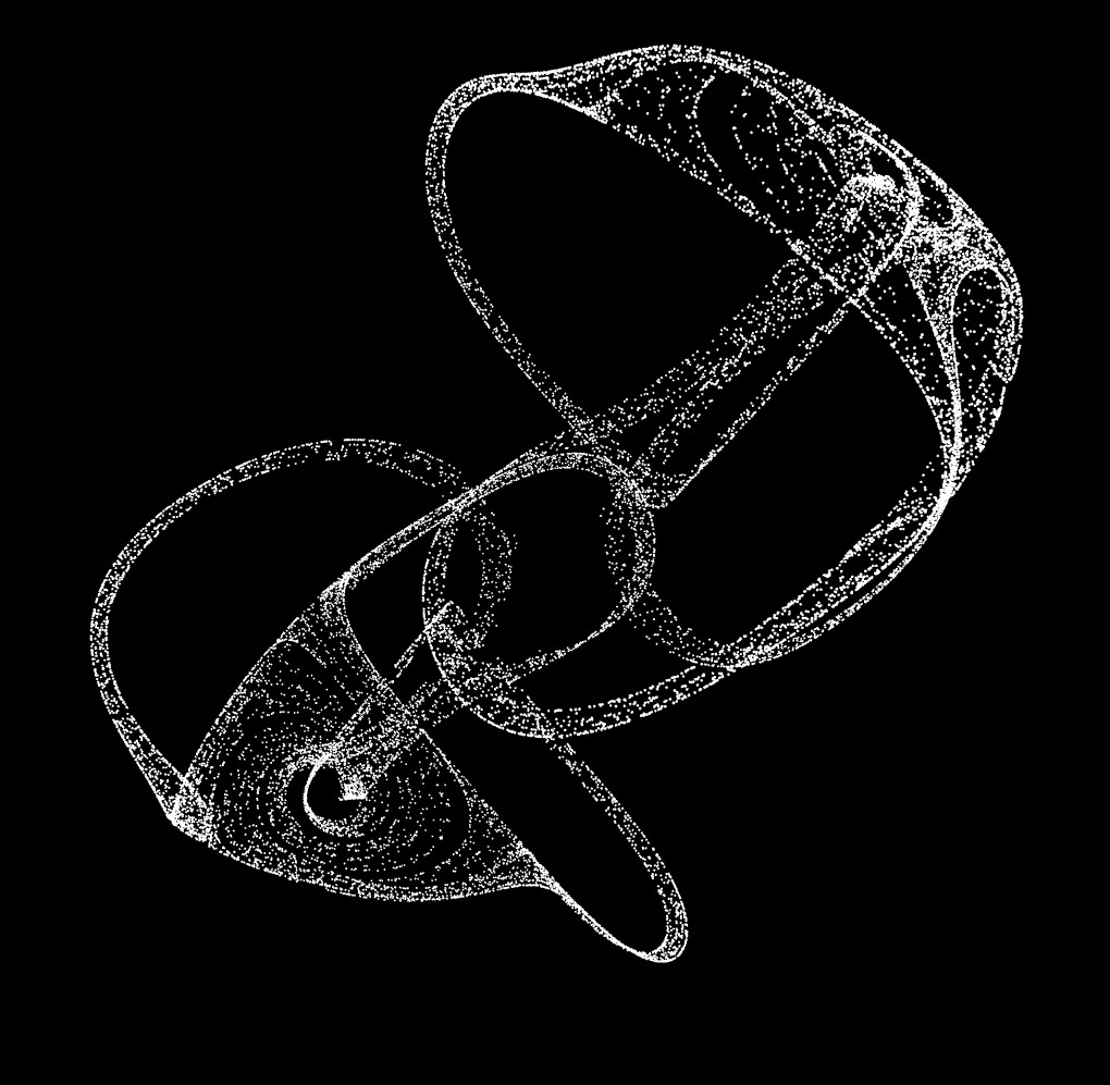 これはトーマスのアトラクターと呼ばれています。これが何を意味しているのかは問題としません。今回は微分方程式の解法の説明です。まずストレンジアトラクターを見ていだだきましょう。