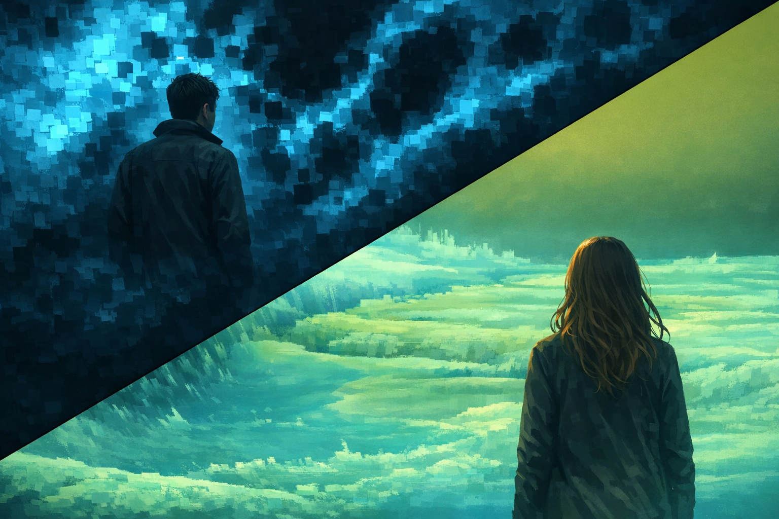 今回のようなblogは表紙がなかなか難しいですが、次の意図で作成しました。今回のナラティブ・パッケージは、「戦争」のような本来体験すべきでない世界をインターラクティブなプログラムを通じて体験させることに強い意味があると思います。そこで2つの戦争により破壊された荒涼とした風景の前に佇む男女をAIに描いてもらいました。背景に使った2つの映像はこれまでに私が作成した映像です(2025.10.08「人の痕跡」, 2026.03.27「凸凹を作る技術・・・」)。本来なら「戦争」を意図して背景を作ると、そのプロセスが体験とナラティブに繋がります。今回はすでに作成した画像から選んだわけですが、この選択や構造を決めるプロセスだけでも体験的な意味があるように感じました。プロセスが容易になれば、複数の人達がプロセスを通じて体験したナラティブを議論することで、間主観性を得るのに役立つように思います。