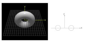 次にトーラスをx軸に対して90°回転した場合を考えてみます。これが次の図です。